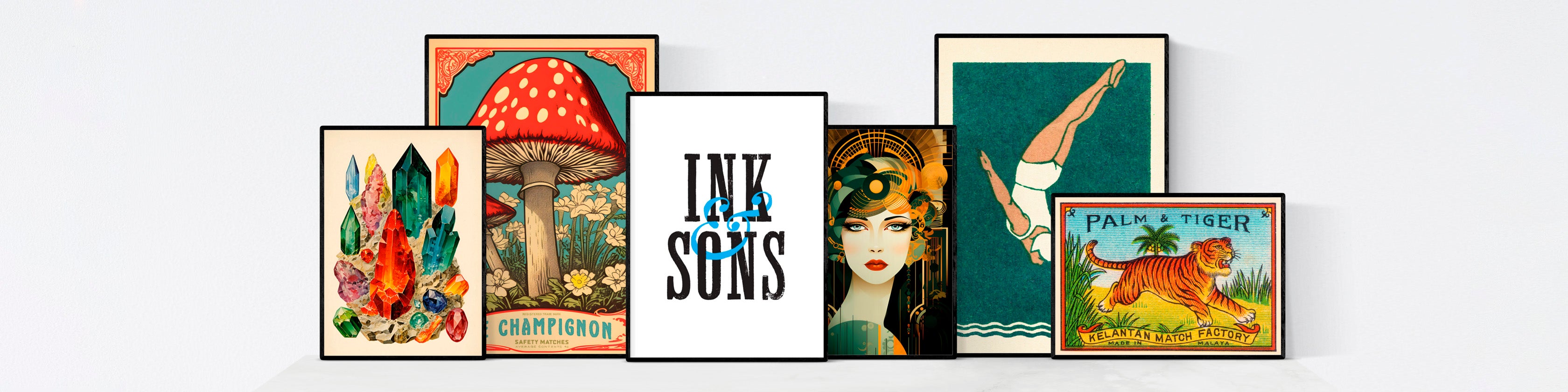 We're a small family-run art print business based in the UK and shipping globally. We're passionate about transforming your living spaces with a touch of vintage charm and a modern twist. Our collection of art prints draws inspiration from the past, offering a unique blend of nostalgia and contemporary creativity. Whether you're seeking to adorn your walls with retro posters, classic maps, or botanical elegance, INK & SONS is your one-stop destination for timeless, captivating wall art.